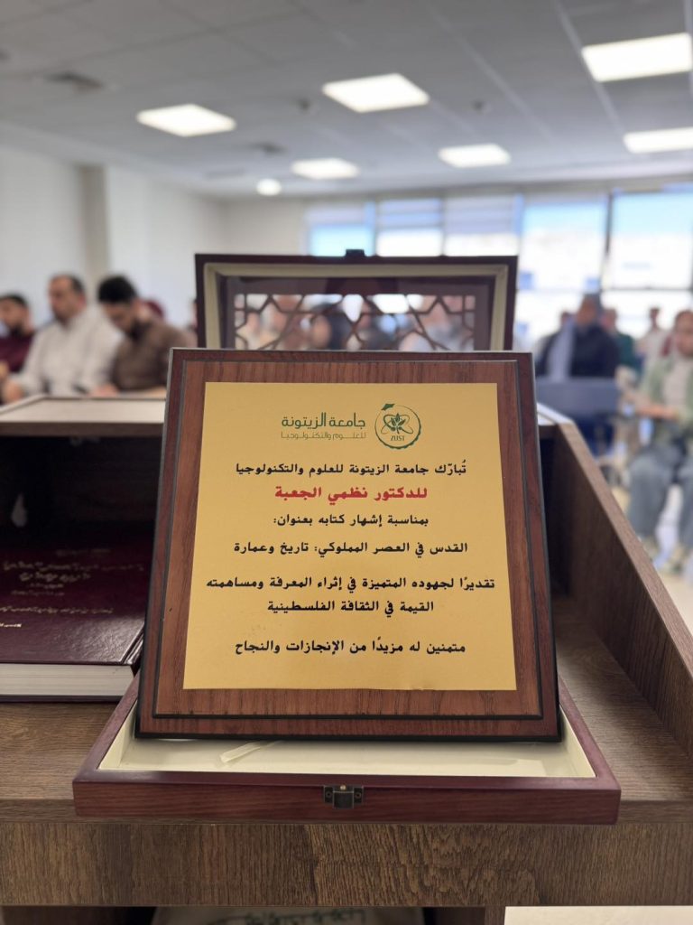 في أجواء علمية وثقافية مميزة، نظّمت جامعة الزيتونة للعلوم والتكنولوجيا حفل إشهار لكتاب جديد يحمل عنوان “القدس في العصر المملوكي: تاريخ وعمارة”، من تأليف المؤرخ الفلسطيني البارز الأستاذ الدكتور نظمي أمين الجعبة، أحد أبرز الأصوات الأكاديمية المدافعة عن تاريخ القدس وهويتها.